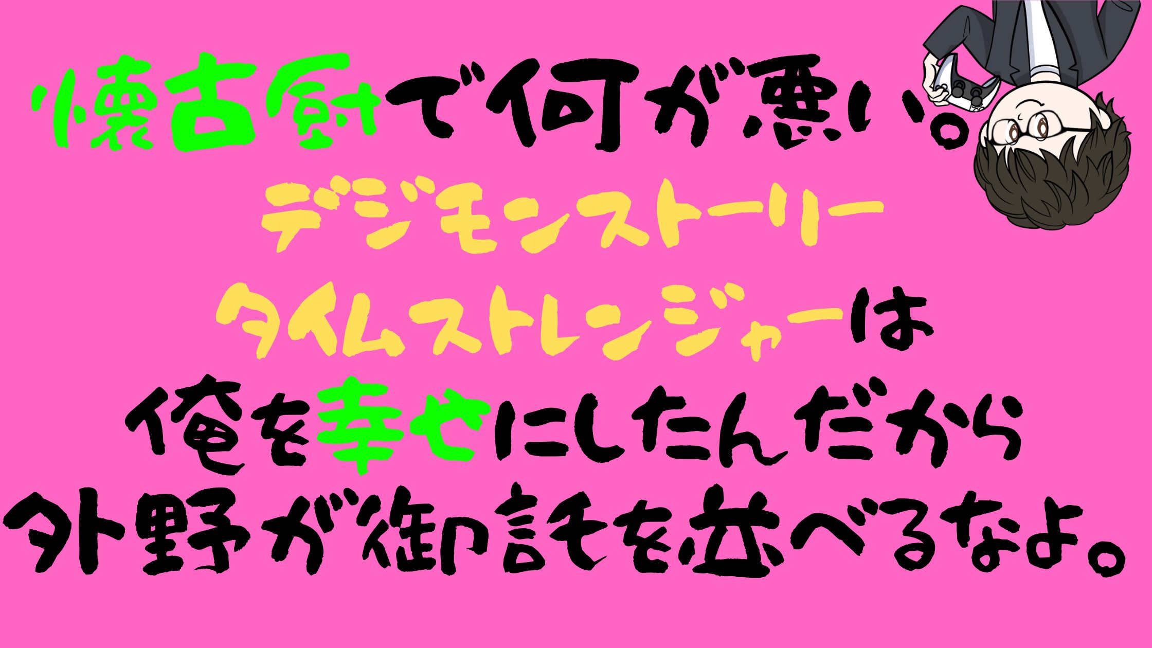 大人になってからもデジモンストーリーサイバースルゥースをプレイし、デジタルモンスターCOLORでピーピー鳴るデジモンの世話をしております。